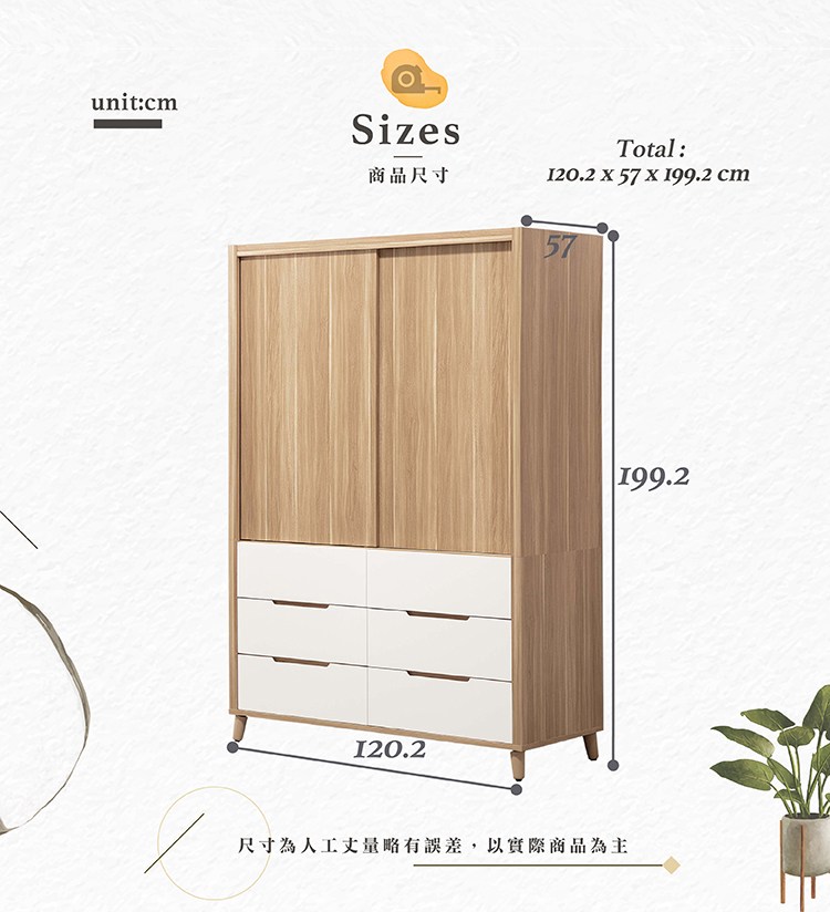 AS DESIGN 雅司家具-莉絲烤白雙色4尺衣櫥-120.2*57*199.2cm