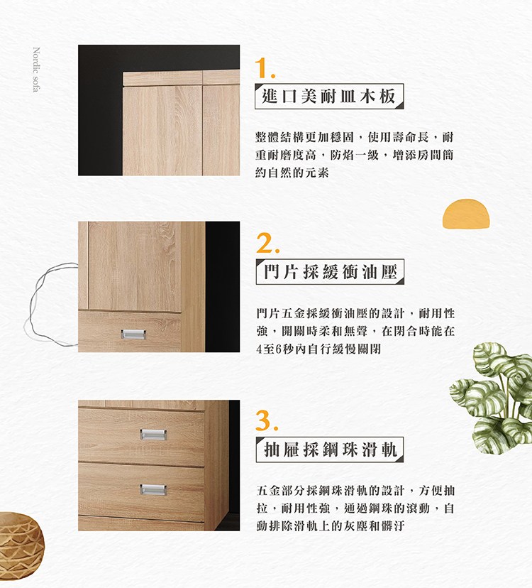 AS DESIGN 雅司家具-瑋莉原橡色3×6尺衣櫥-80*58*176cm