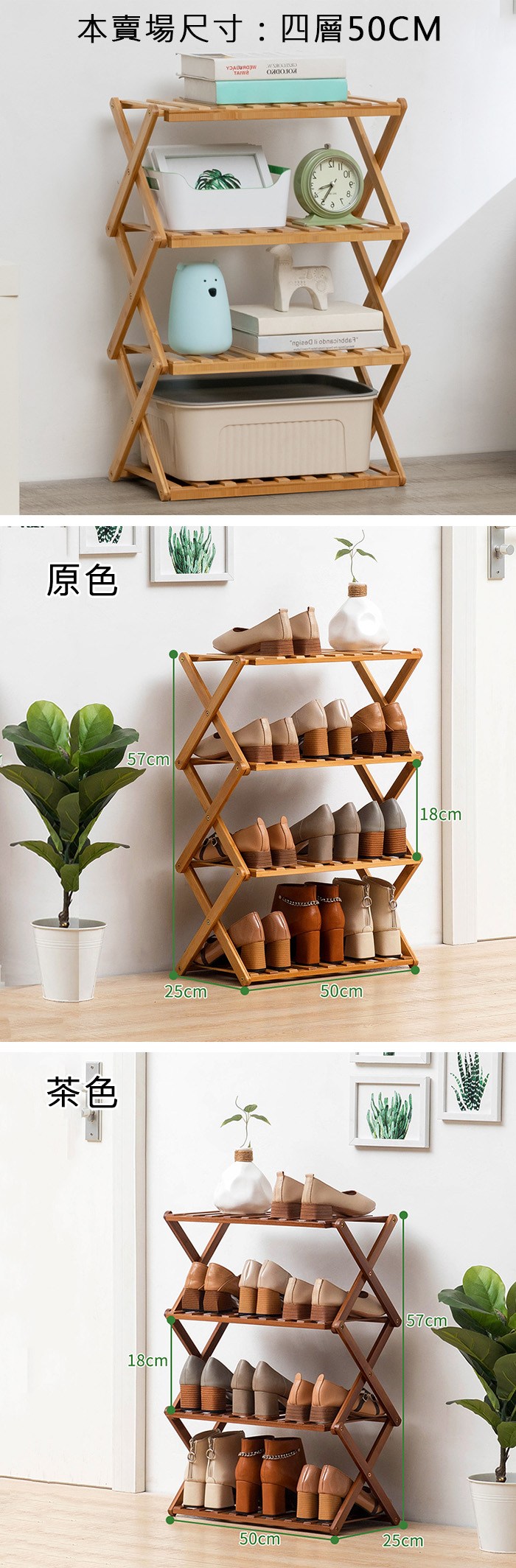 【HappyLife】免安裝楠竹四層鞋架可折疊收納寬50 YV9910原