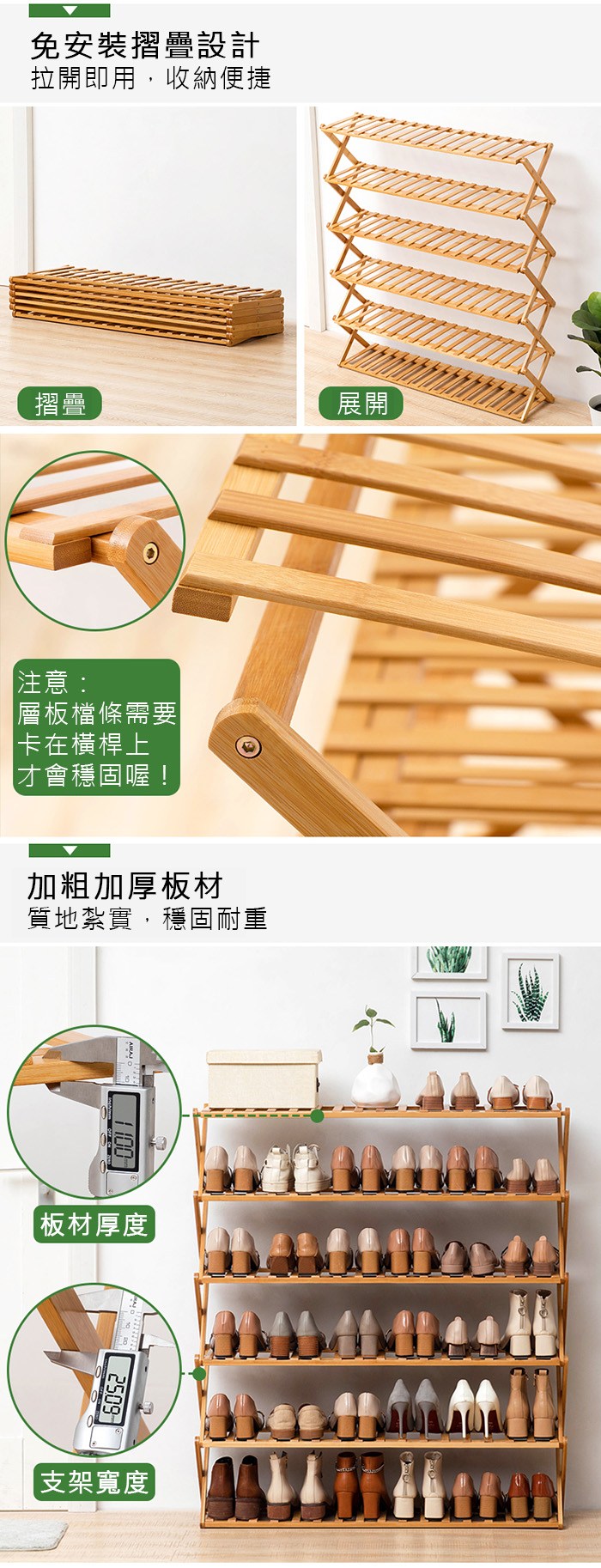 家可 70CM六層免組裝竹製鞋架置物架 收納架 竹鞋架 鞋櫃