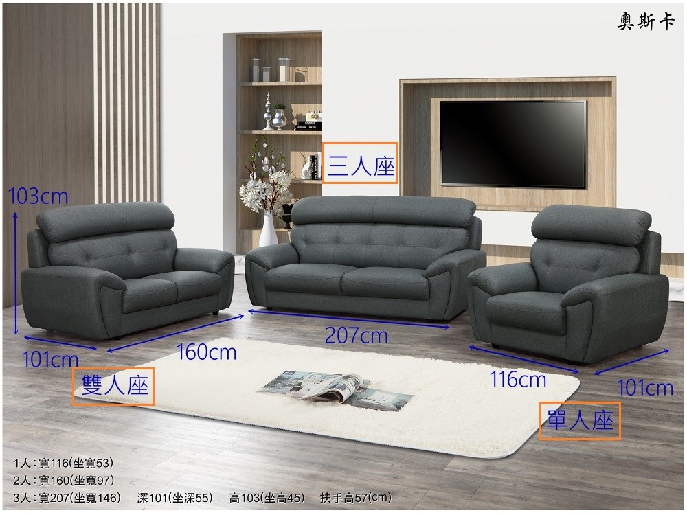 尺寸規格 雙人座 : 寬 160 X 深 101 X 高 103 (公分)