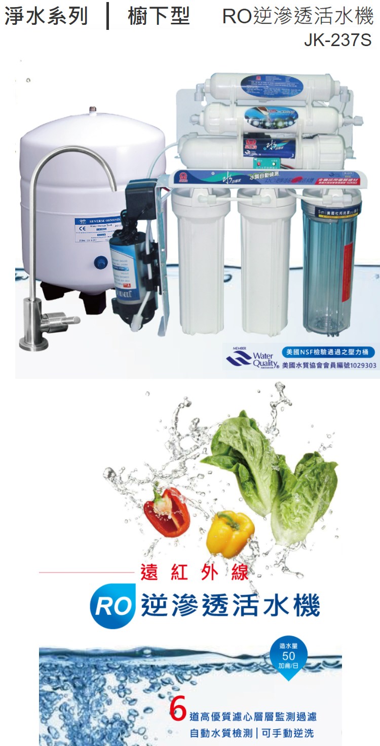 晶工牌櫥下型RO逆滲透活水機/淨水器 JK-237S~不含安裝