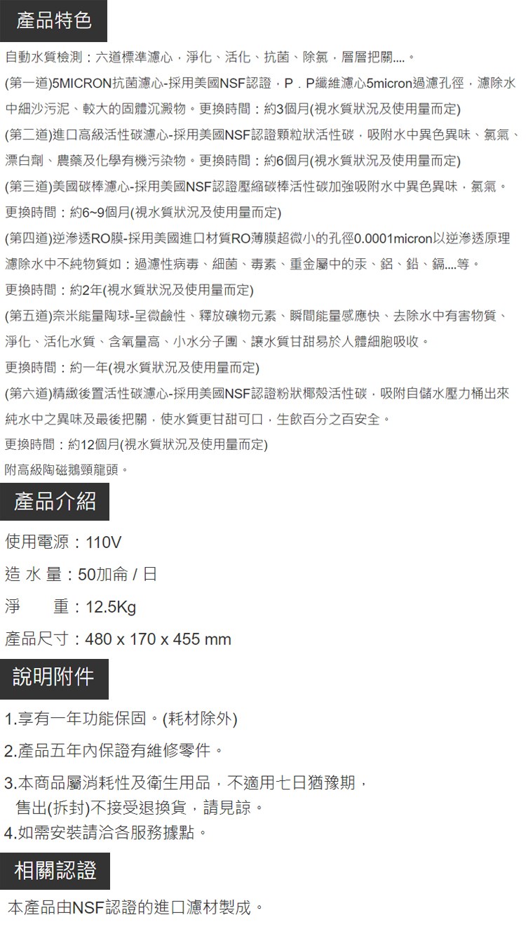 更換時間:約6~9個月(視水質狀況及使用量而定)