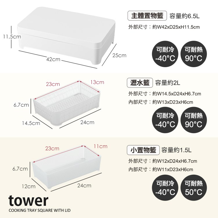 ★主體置物籃約6.5L、小置物籃約1.5L、小瀝水籃約2L