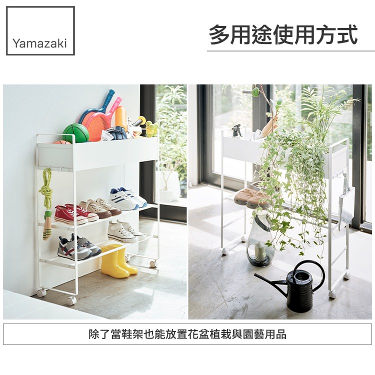 除了當鞋架也能放置花盆植栽與園藝用品!
