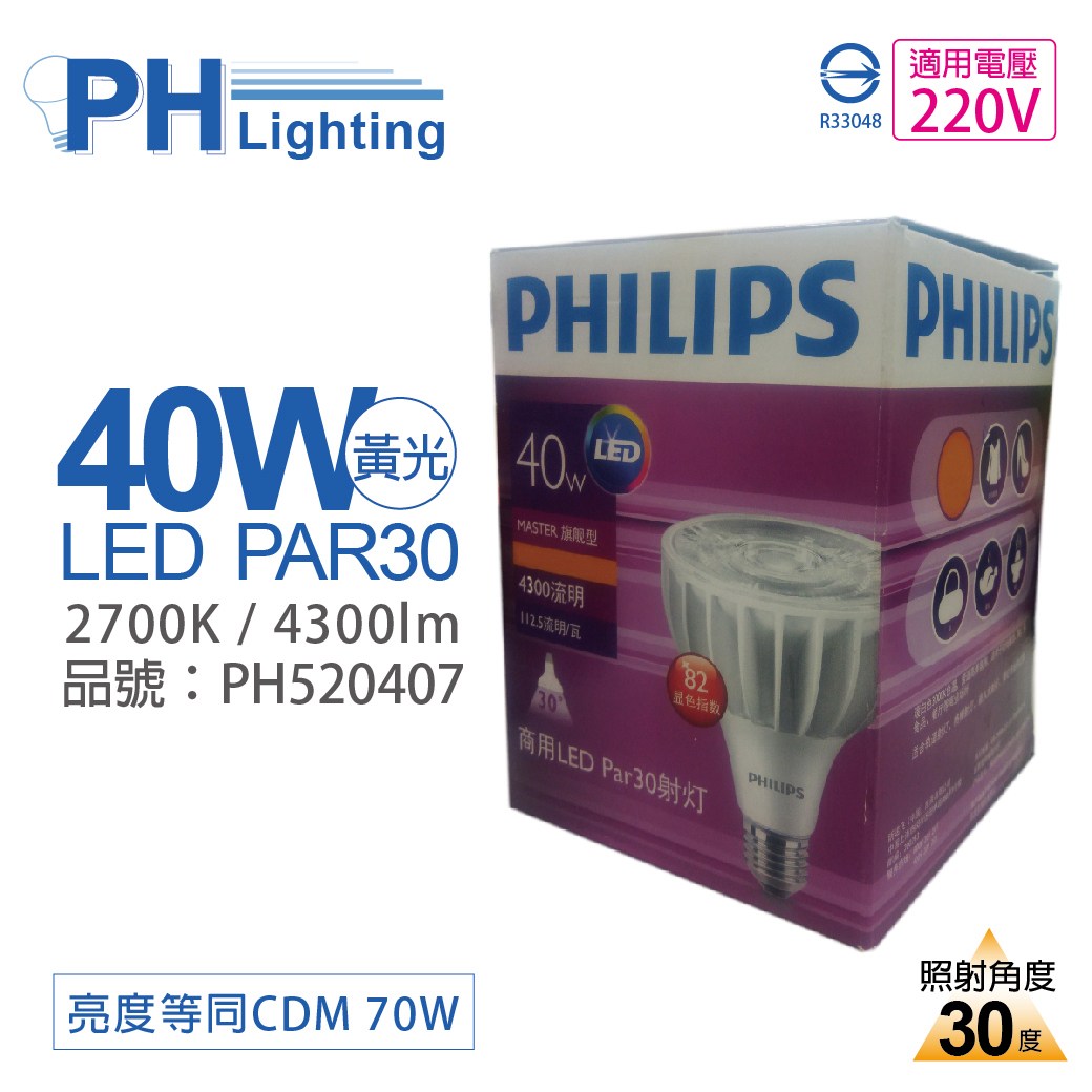 PHILIPS飛利浦 LED PAR30 40W 2700K 黃光 30度 220V E27 燈泡 _ PH520407