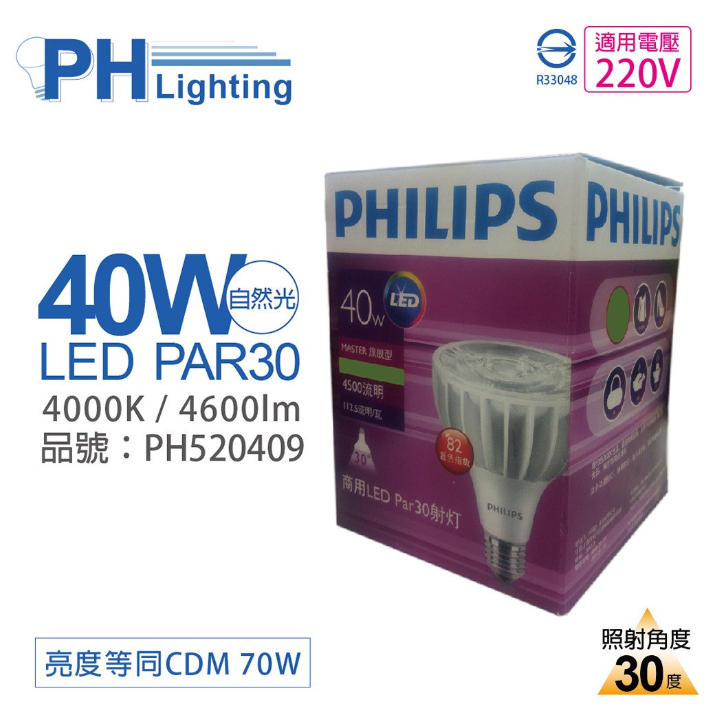 2入 【PHILIPS飛利浦】 MasterLED PAR30 40W 30度 4000K 自然光 220V E27 燈泡 PH520409