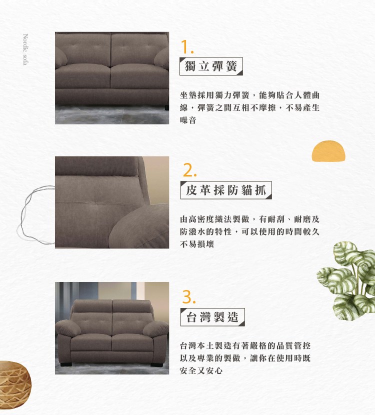 ASSARI-日比野1+2+3人座貓抓皮獨立筒沙發淺咖
