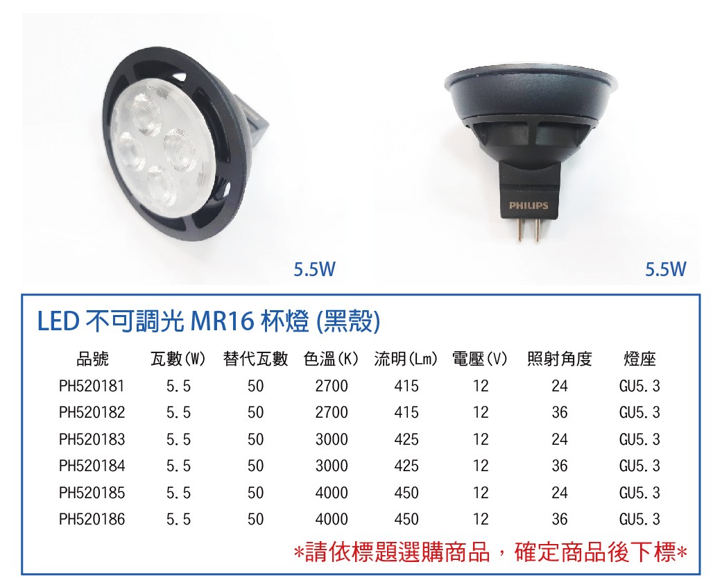 〖飛利浦 PHILIPS〗★含稅 LED MR16 杯燈 5.5W 12V 驅動器 另售★永光 MR165.5W-2.7K-B