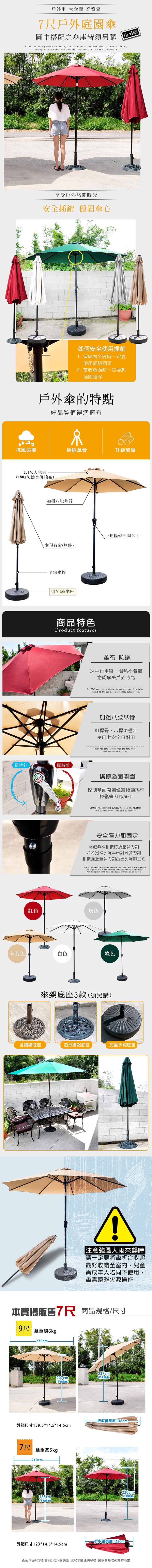 戶外大型防潑水防風折疊傘7尺-不含傘座(傘座請另行加購)