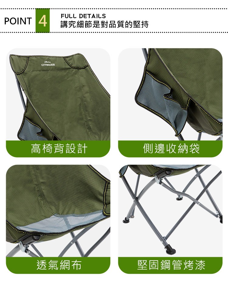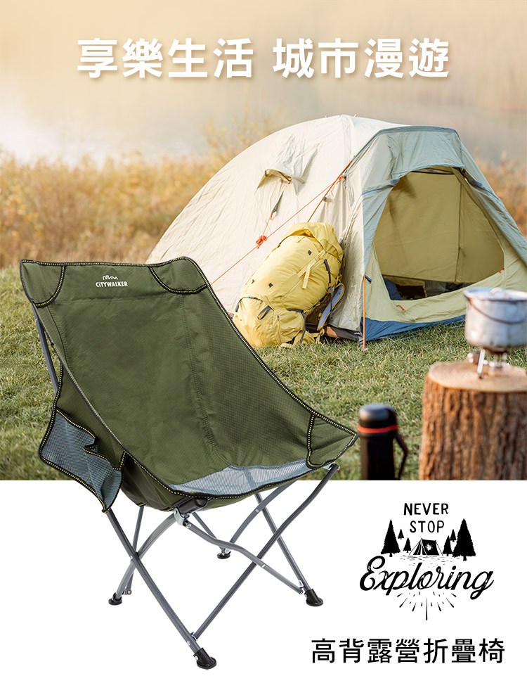 城市漫遊 高背露營摺疊椅 軍綠色