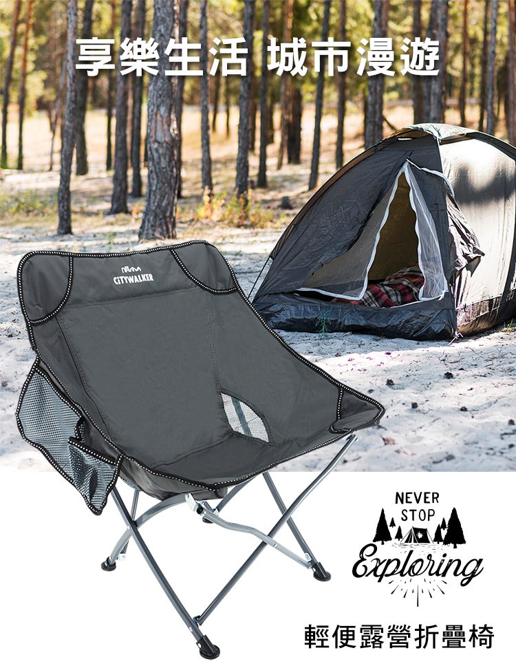 樂生活嚴選 戶外休閒輕便露營折疊椅-灰色