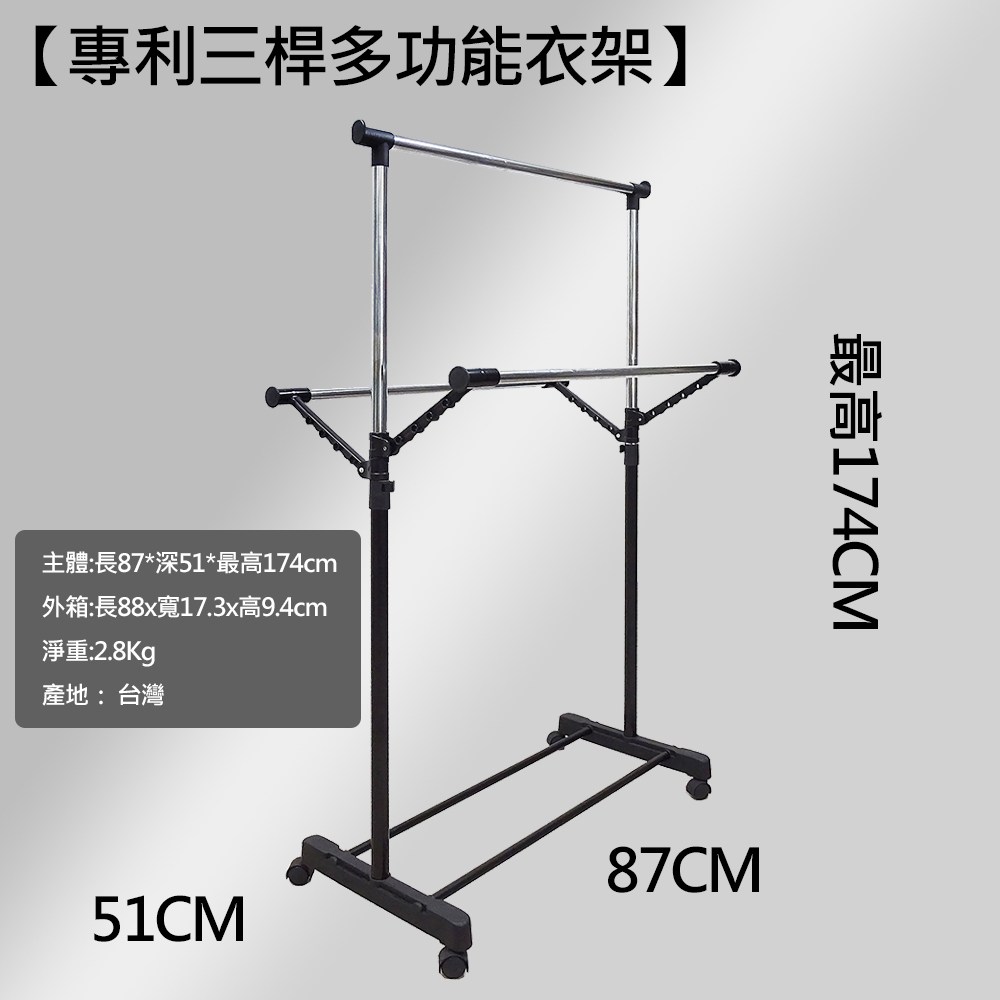 【宅配免運】專利三桿多功能衣架 87x51x111-174(可伸縮) 曬衣架伸縮曬衣竿晾衣桿曬衣桿晾衣架伸縮衣架