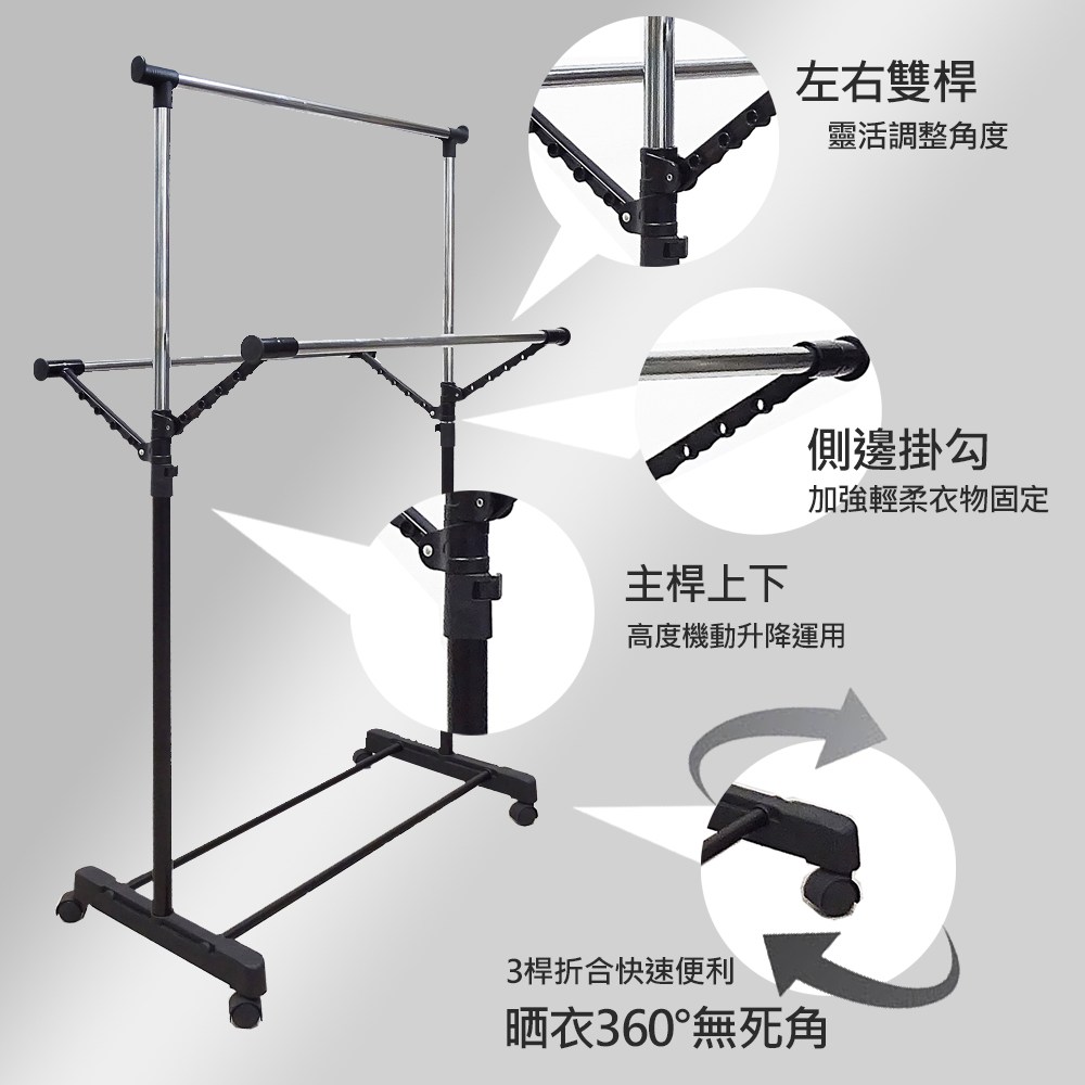 【Amos】日系簡約雙桿伸縮吊衣架/曬衣架黑色