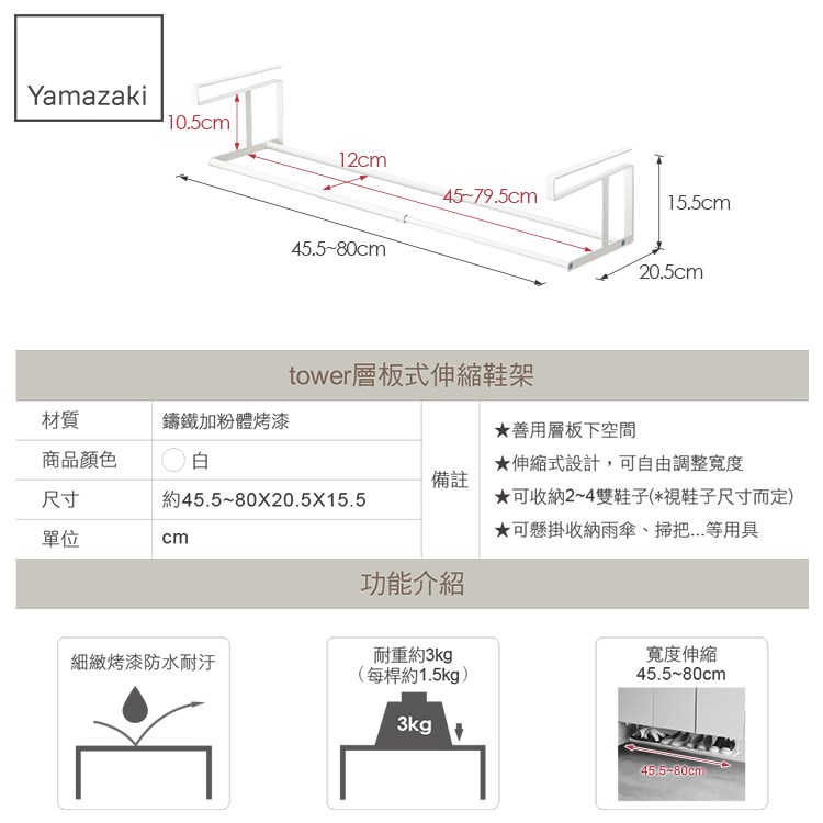 快利用「tower層板式伸縮鞋架」增加鞋子收納空間!
