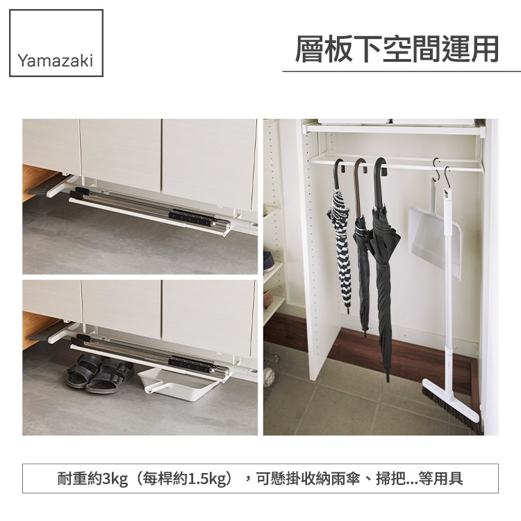 除了收納鞋子,還可以懸掛雨傘、掃把..等。