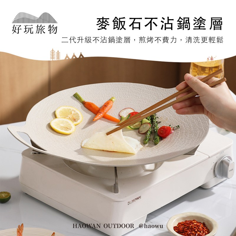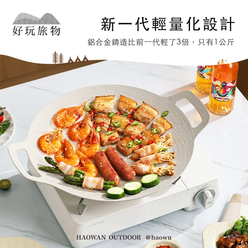 好玩旅物 輕量薄型韓式麥飯石雙耳不沾鍋烤肉盤 34cm 1組