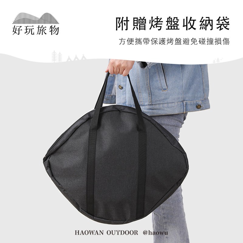 好玩旅物 輕量薄型韓式麥飯石雙耳不沾鍋烤肉盤 附收納袋 鋁合金材質 38cm 1個