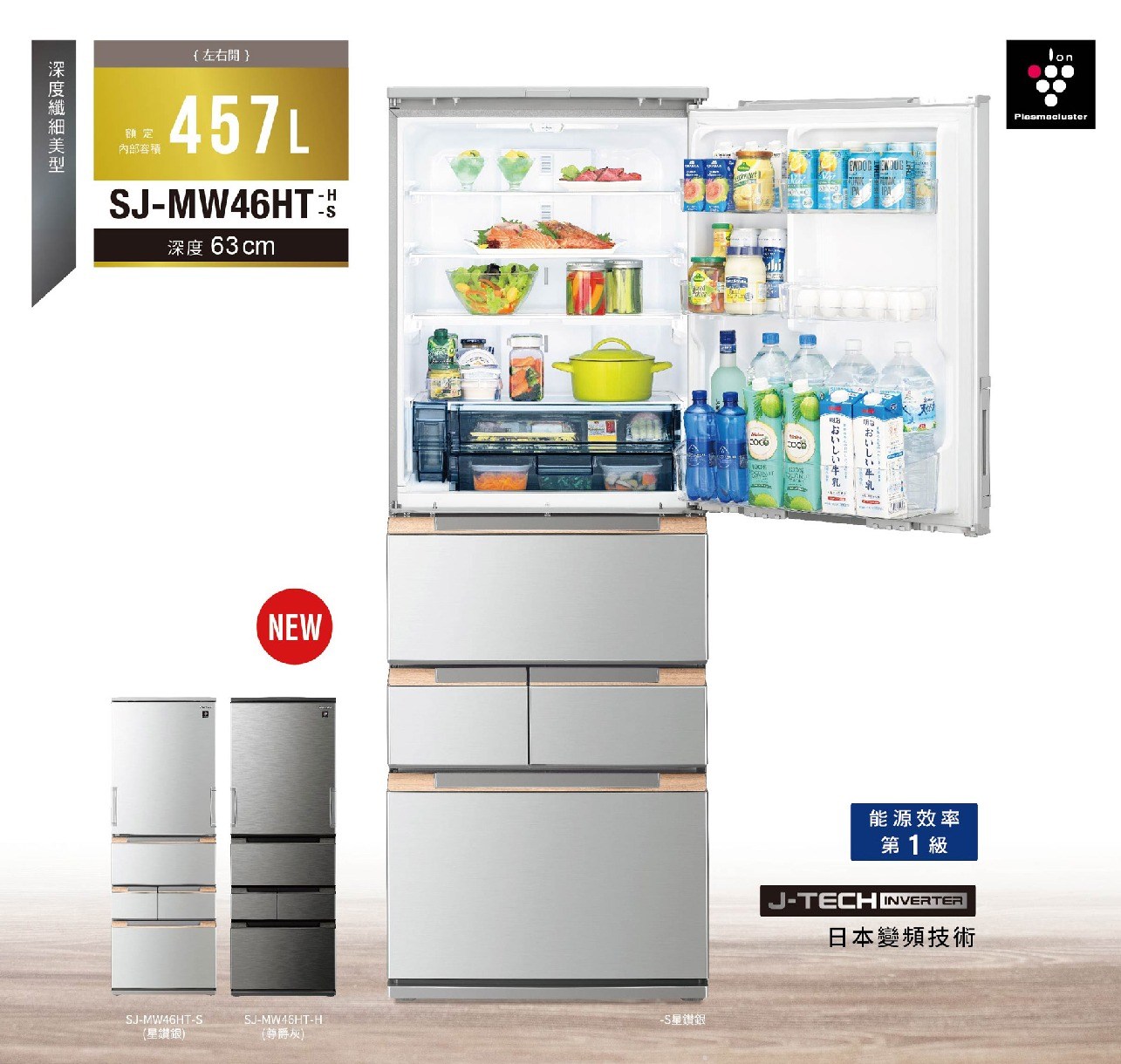 夏普SHARP 504公升 自動除菌離子左右開任意門變頻冰箱 SJ-MW51KT-W 典雅白