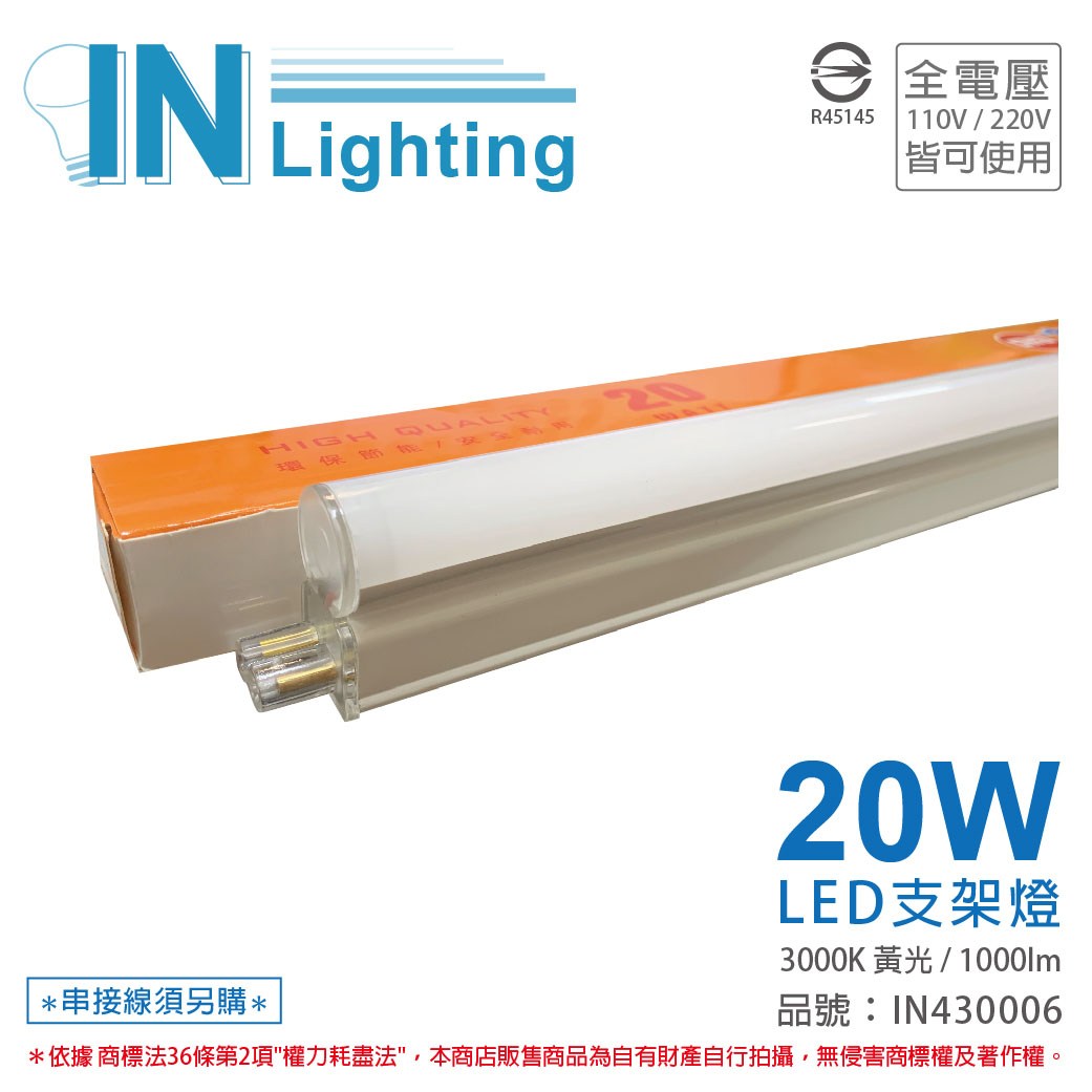 旭光 LED T8 20W 黃光 4尺 1燈 單管 全電壓 山型燈