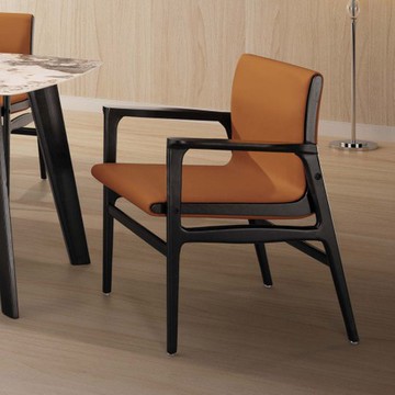 瑟夫實木雙扶手餐椅(橘色皮)