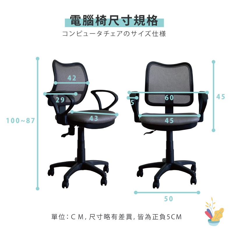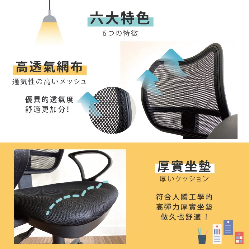 台灣製舒適辦公椅 NP-07 黑色 - 人體工學設計 透氣網布 可調節高度 20 x 10 x 2cm