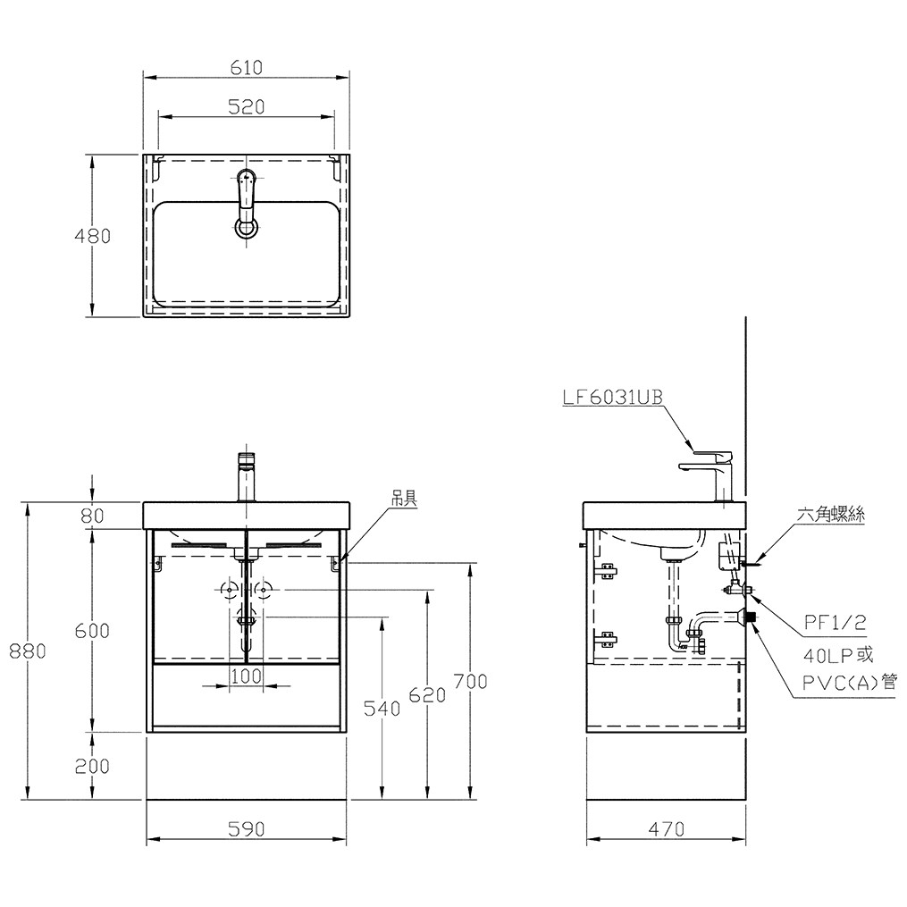和成 HCG 寬60臉盆浴櫃組 LCS400-4115NE