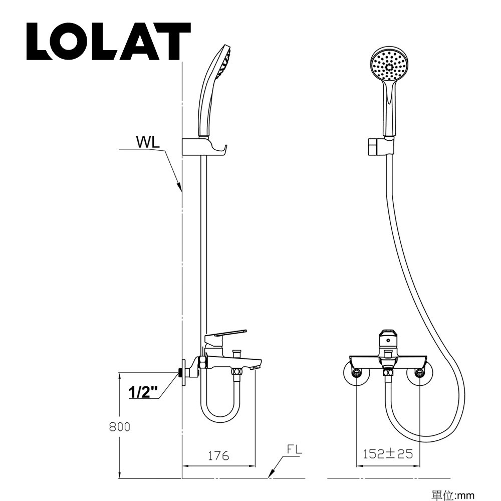 LOLAT 無鉛 沐浴龍頭 淋浴龍頭 黑 TL260S-LF-Z