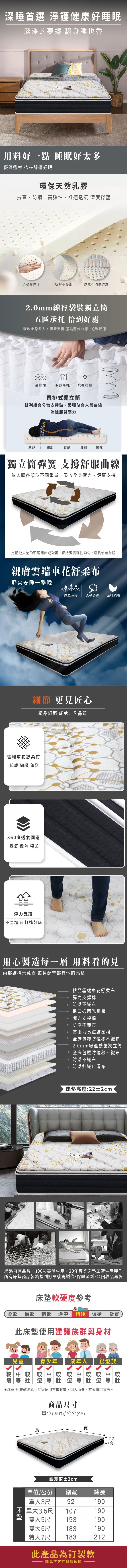 [愛傢舒眠館]催眠絲 - 天絲棉三線乳膠獨立筒床墊