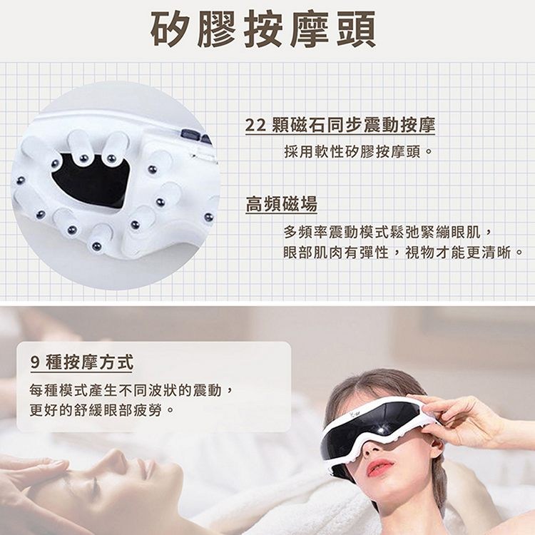 ◆ 22顆磁石同步振動,有效按摩眼部周圍穴道