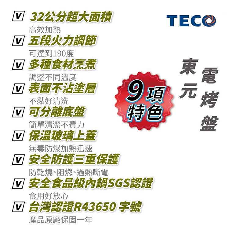 TECO東元 32公分圓烤盤.電烤盤 XYFYP3001