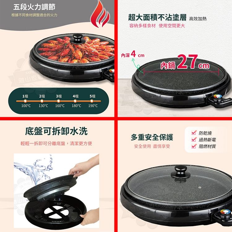 ◎ 烤盤尺寸:外框 32cm;內鍋 27cm;烤盤內深 4cm