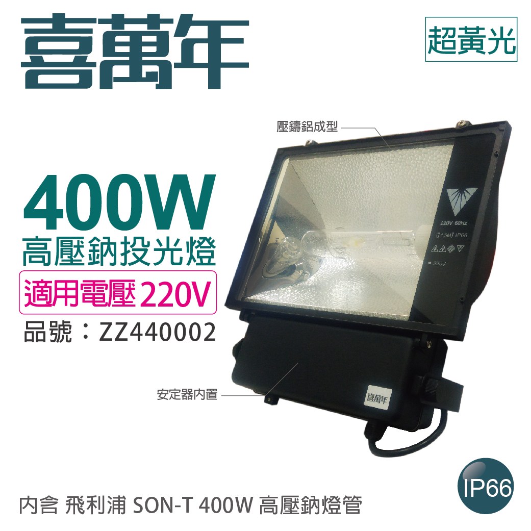 喜萬年 400W 220V 2000K 超黃光 高壓鈉氣燈 投光燈具