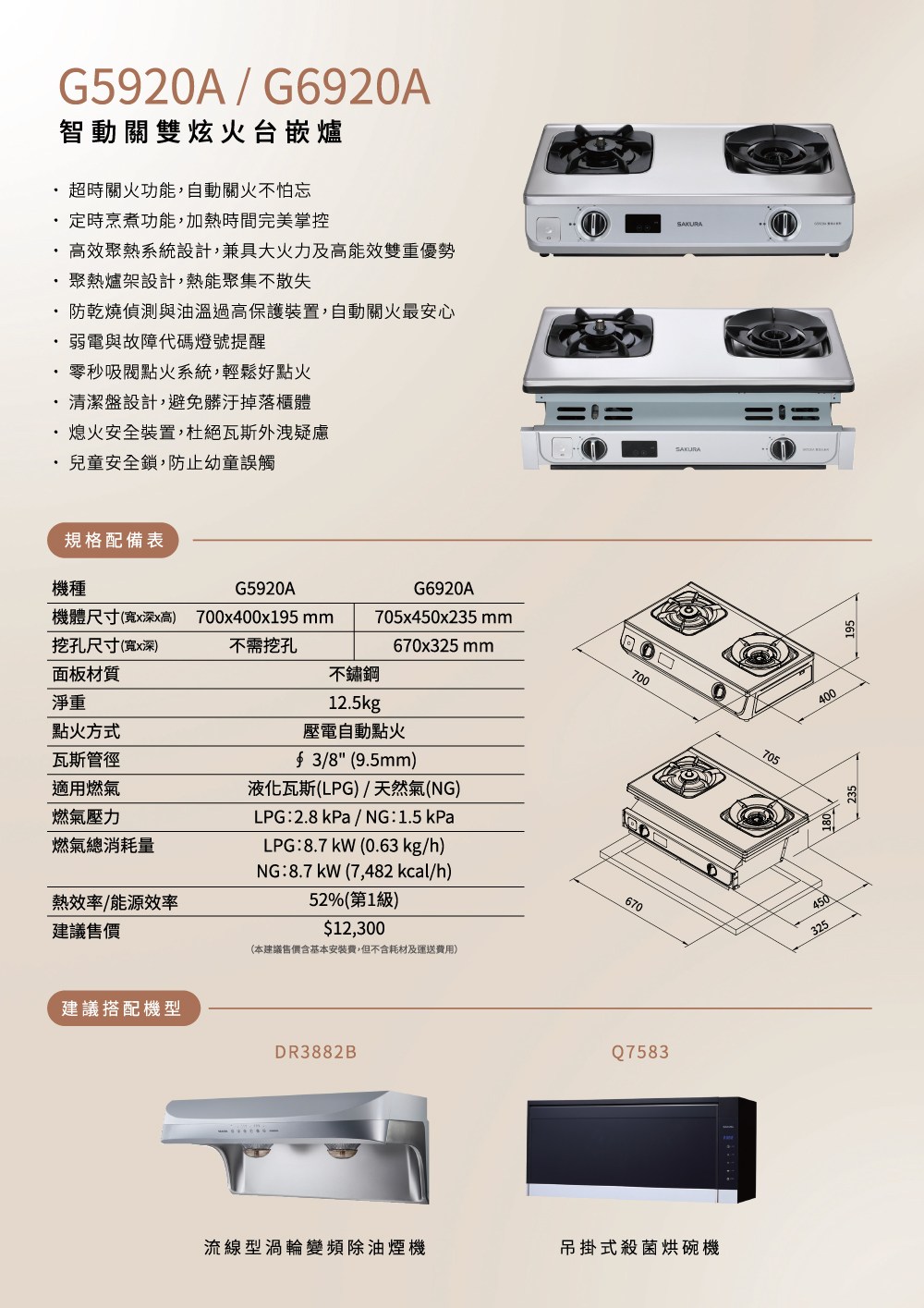 櫻花智動關雙炫火雙口台爐天然/液化 G5920A