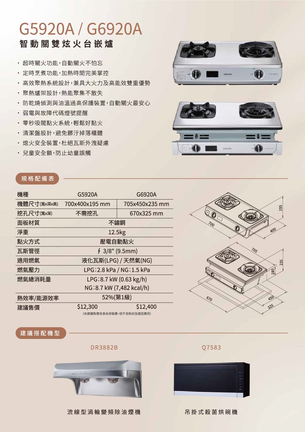 櫻花 智動關雙炫火安全爐 (左邊防乾燒) 瓦斯爐 台爐 G5920ASN 天然氣