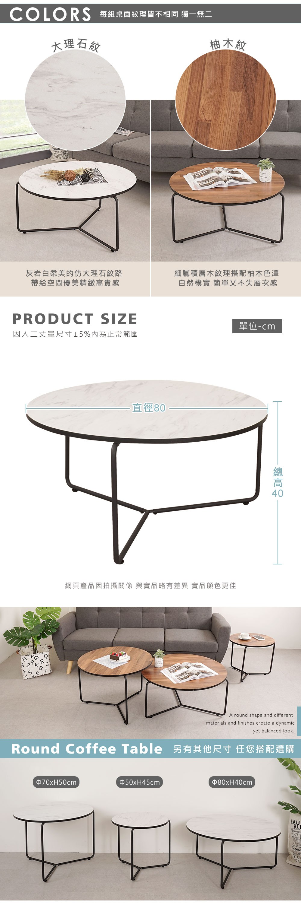 Homelike 喜家居圓形大茶几(2色可選)(2218)柚木紋