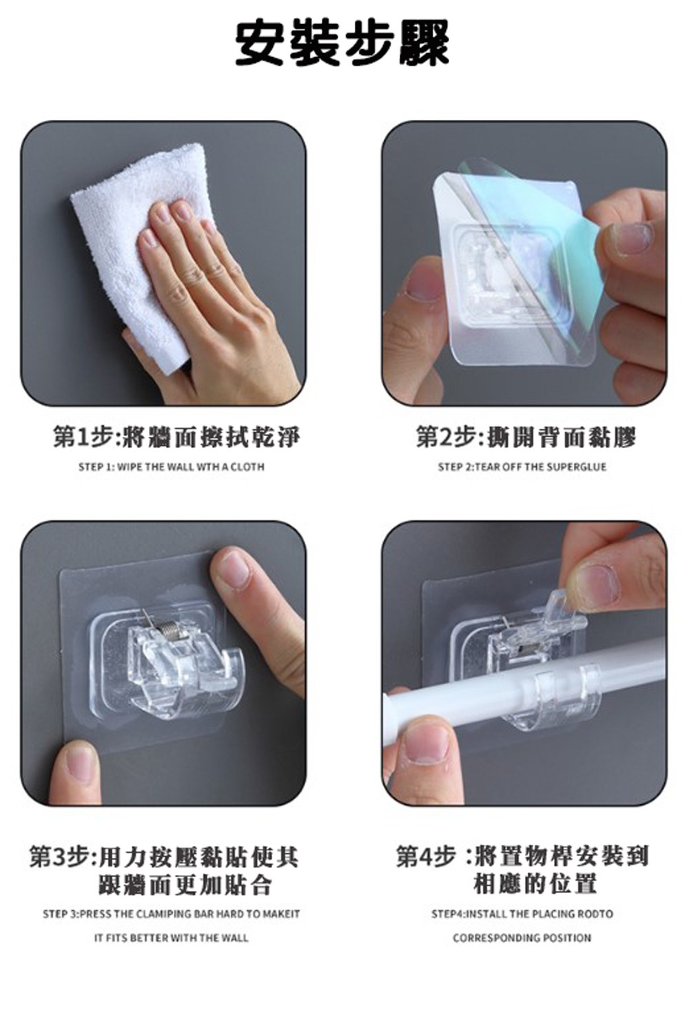 免打孔滑軌掛鉤 白色 總長30.5cm 優選塑料材質 負重約2kg 4個