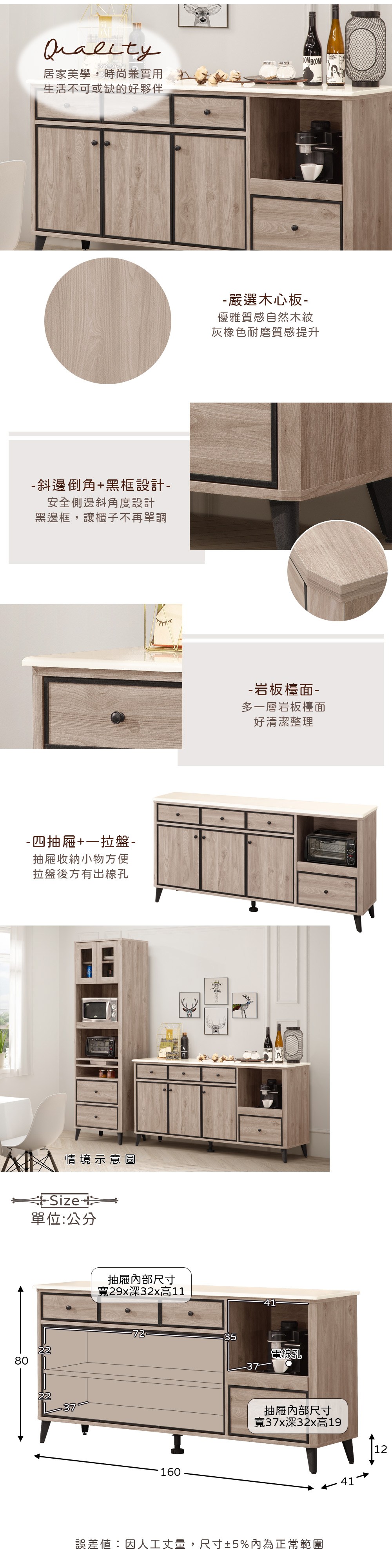 Homelike 喜家居5.3尺岩板餐櫃(2236)