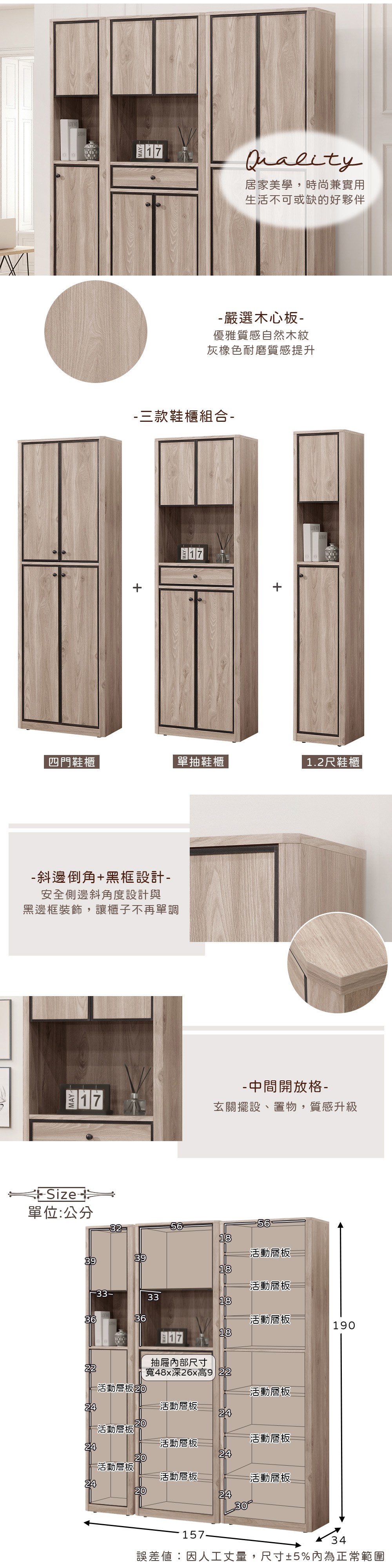 BuyJM低甲醛加寬雙層可堆疊附門鞋櫃(寬100x高155公分)