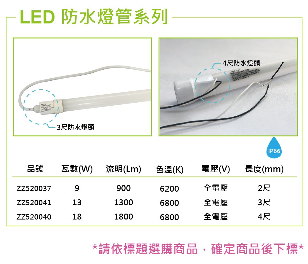 2入 綠明科技 LED燈管 T8 9W 6200K IP66 2呎