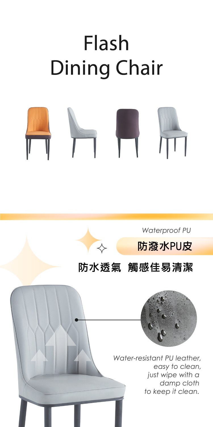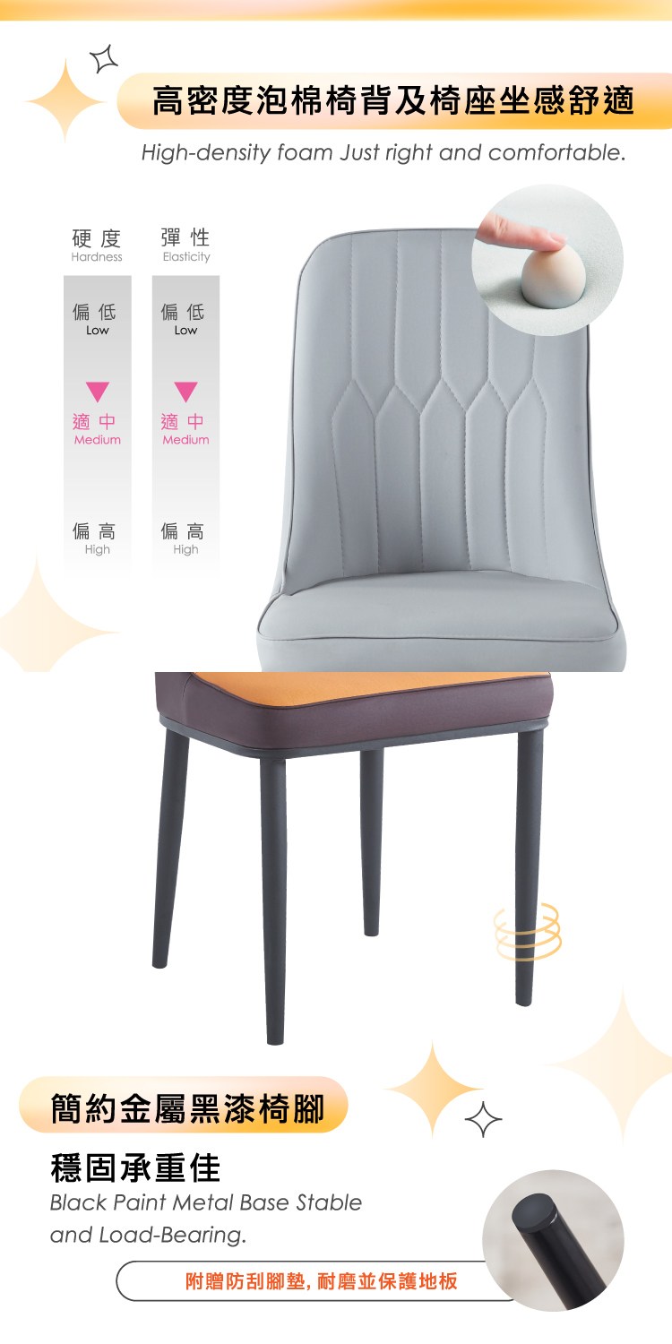 線條流暢圓潤邊角設計觸感柔順,高密度泡棉椅背及椅座坐感舒適,簡約金屬黑漆椅腳,穩固承重佳,
