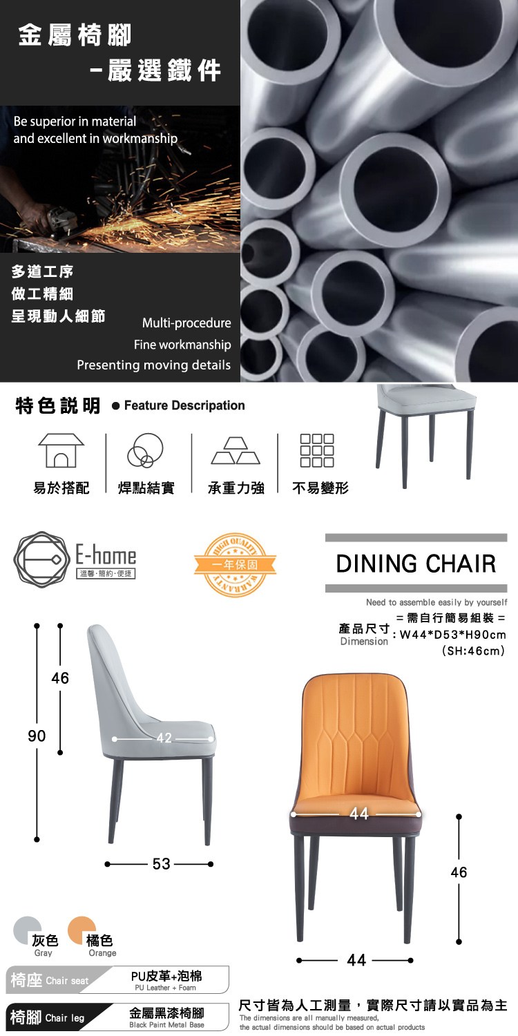 * 簡約金屬黑漆椅腳,穩固承重佳