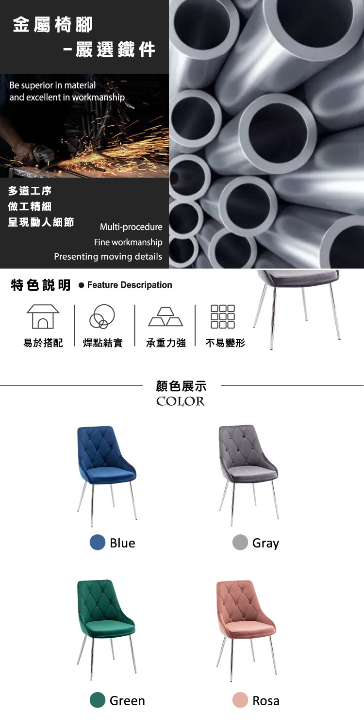 * 銀色電鍍金屬椅腳、穩固又耐用