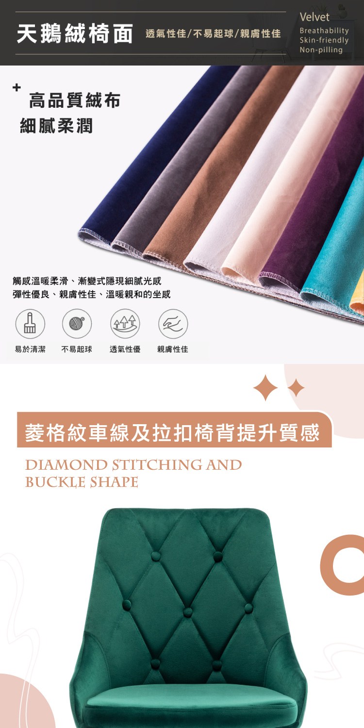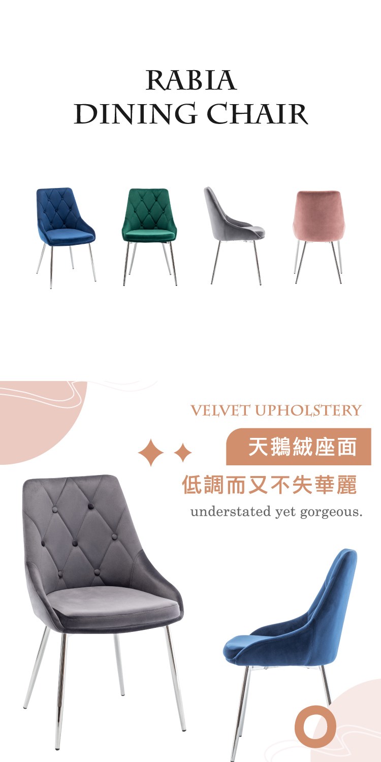 [E-home]Rabia瑞比婭拉扣菱紋絨布電鍍腳休閒餐椅,典雅又現代的新潮流,為空間注入完美時尚,