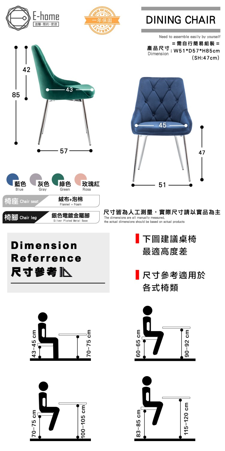 E-home Rabia瑞比婭拉扣菱紋絨布電鍍腳休閒餐椅-四色可選