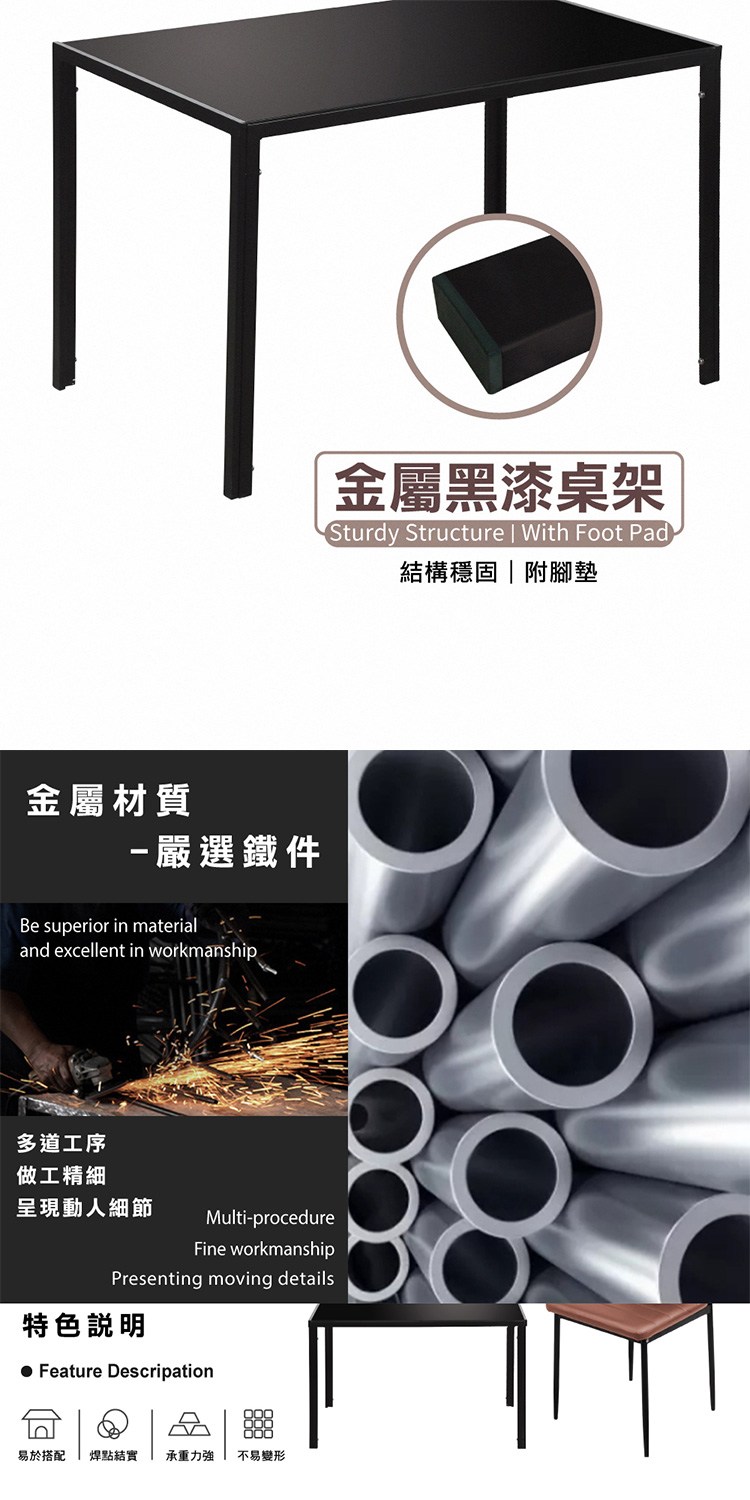 * 金屬黑漆桌架附腳墊,結構穩固