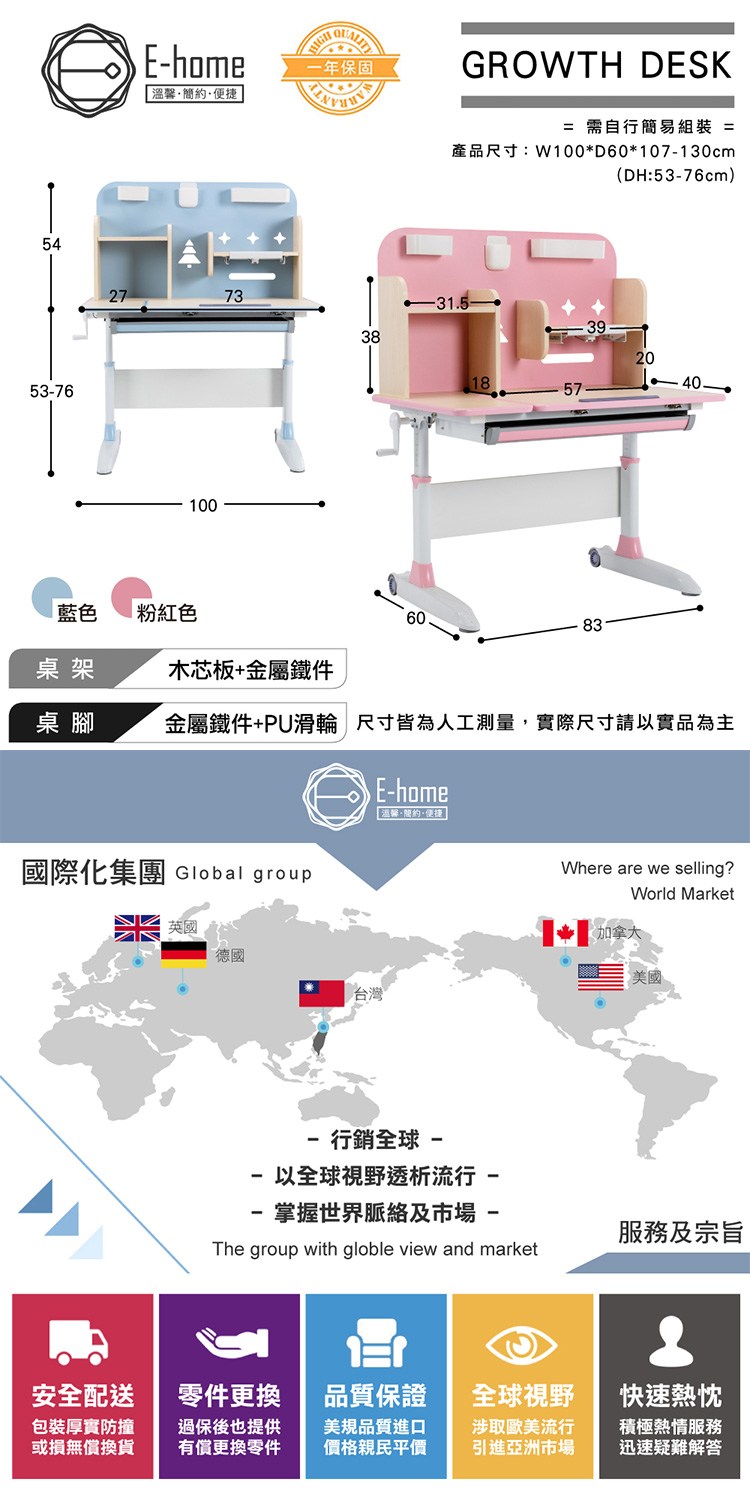 [E-home]NUNU努努多功能兒童成長桌-寬100cm,陪伴寶貝快樂成長的兒童成長桌,多種功能設計讓寶貝更享受閱讀。