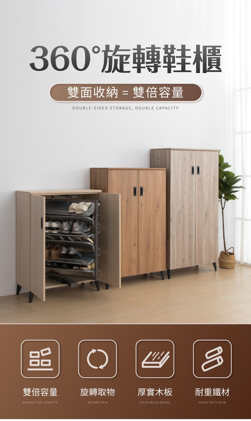 【IDEA】迪奈雙面旋轉收納鞋櫃大款(三色任選)淡雪松木