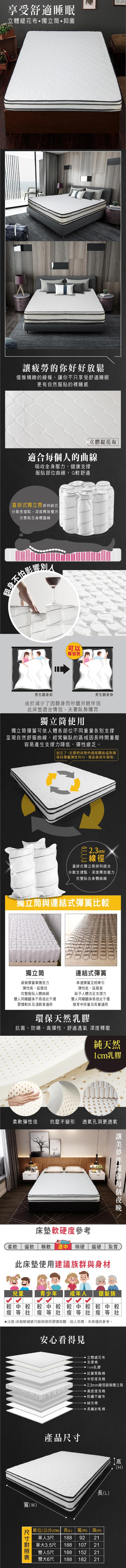 MG抗菌竹碳紗乳膠防潑水蜂巢獨立筒床墊-雙人五尺