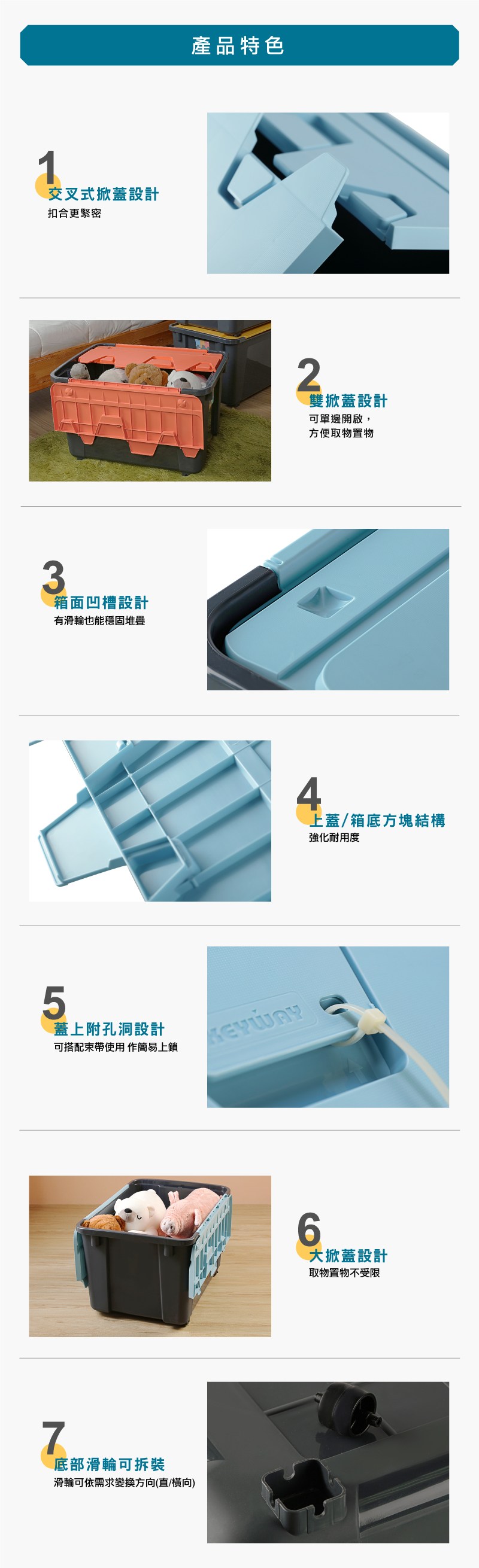 KEYWAY 聯府 雙掀蓋整理箱 55L LX-551 550 x 388 x 333mm 藍色 4個